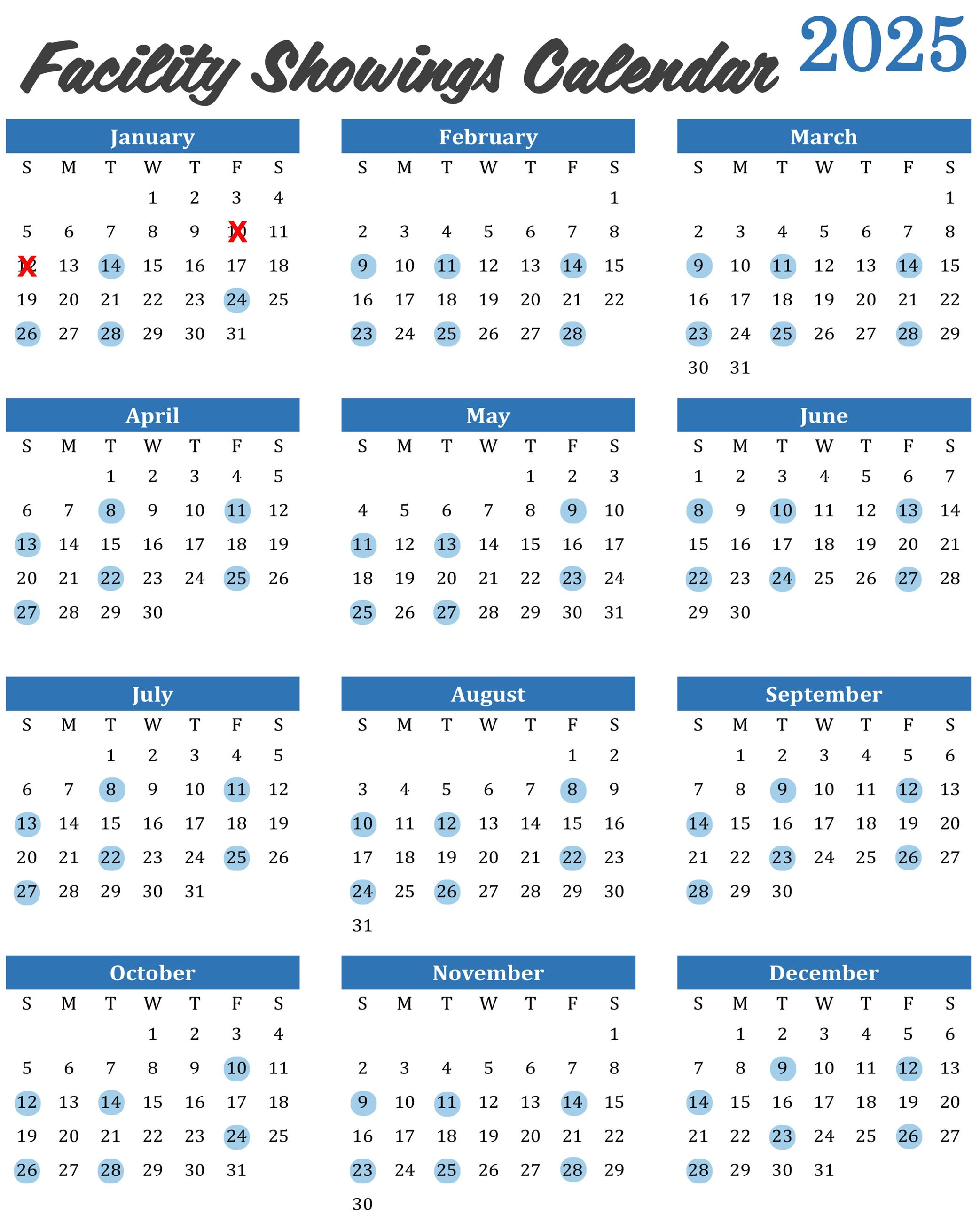 Click here for the 2025 Facility Showings Calendar (JPG)